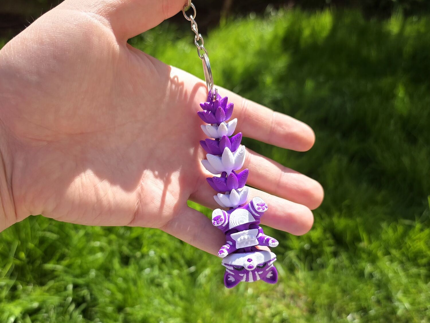 Un element special al acestui breloc este construcția sa articulată: corpul și coada sunt segmentate, permițând mișcări independente care oferă o experiență tactilă plăcută și un efect vizual jucăuș. Această flexibilitate transformă produsul într-un mic obiect anti-stres, ideal pentru momentele în care ai nevoie de relaxare.