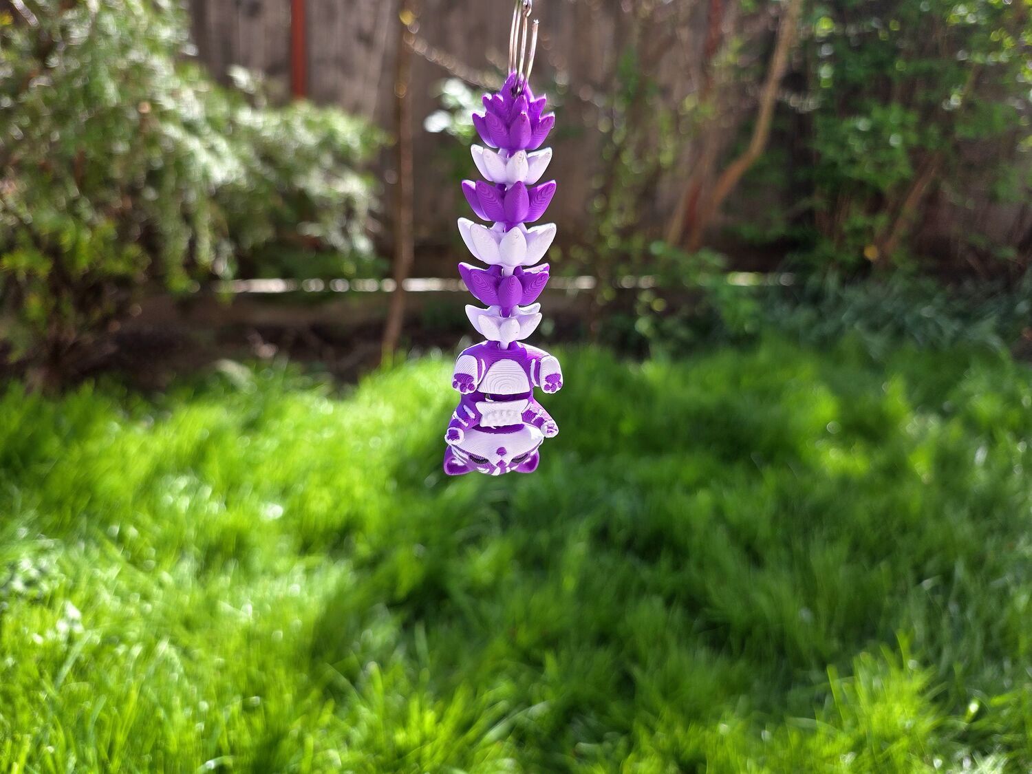 Brelocul „Pisicuța Mov” este un accesoriu adorabil și interactiv, realizat prin imprimare 3D cu atenție la detalii și funcționalitate. Designul prezintă o pisicuță simpatică în nuanțe delicate de alb și mov, perfectă pentru a aduce un plus de personalitate cheilor, rucsacului sau genții tale.
