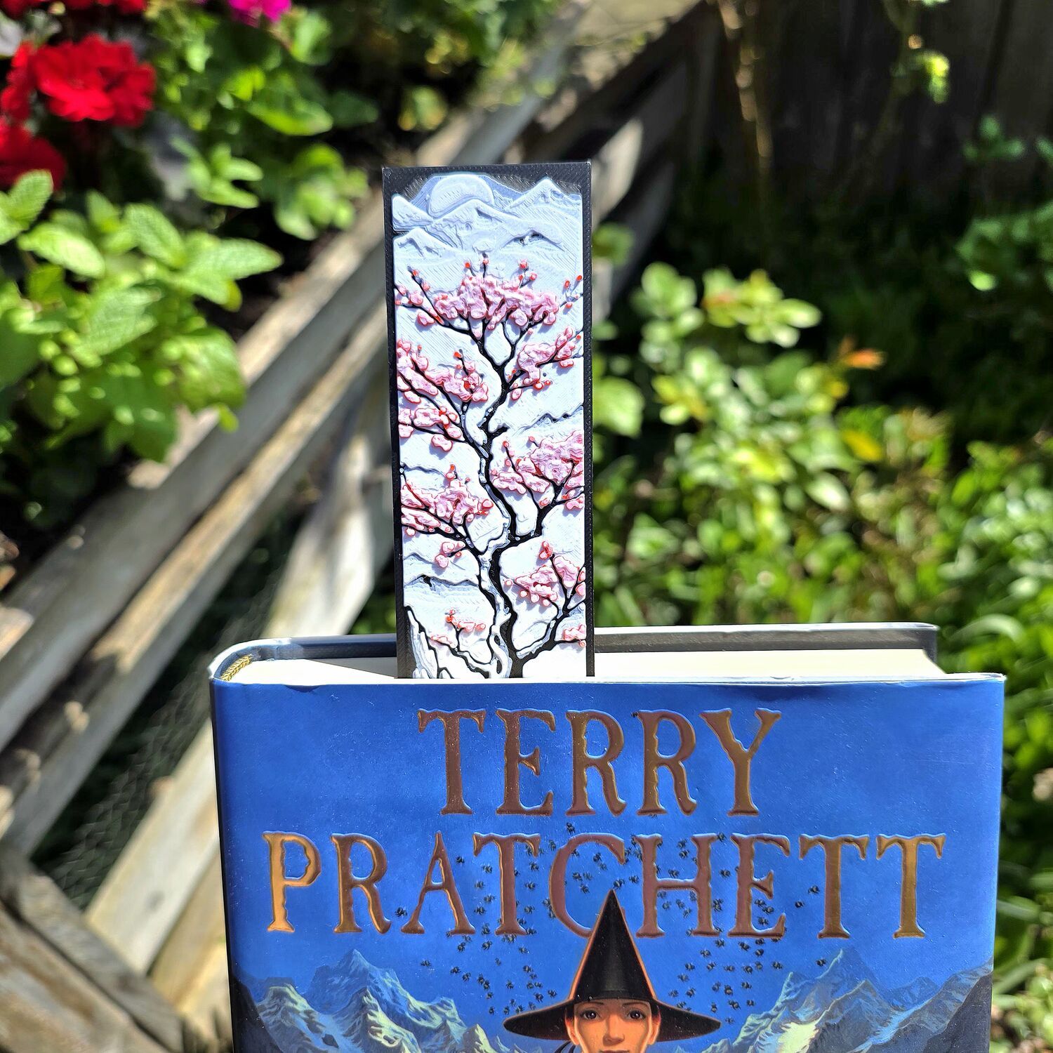 Semnul de carte „Munții Japoniei” îmbină eleganța minimalismului cu frumusețea naturii asiatice, fiind realizat prin imprimare 3D cu detalii reliefate fine. Designul prezintă un peisaj montan stilizat, în tonuri de alb și negru, traversat de un râu liniștit, peste care se aștern delicat flori de sakura în nuanțe de roz.