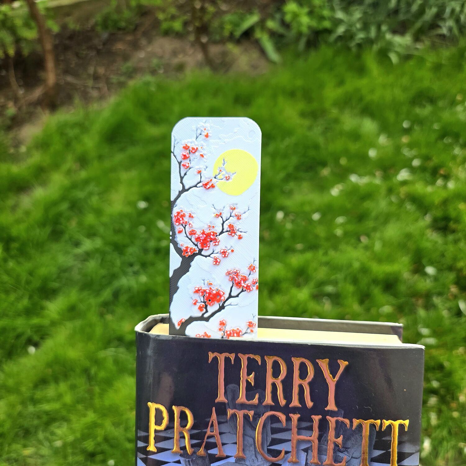 Adaugă un plus de rafinament momentelor tale de lectură cu semnul de carte „Sakura Însorit”, realizat prin tehnologie de imprimare 3D de înaltă precizie. Designul său reliefat evidențiază frumusețea florilor de sakura în nuanțe vibrante, așezate pe un fundal luminos, completate de crengi contrastante și un peisaj montan subtil ce oferă profunzime și o atmosferă calmă, inspirată din natură.