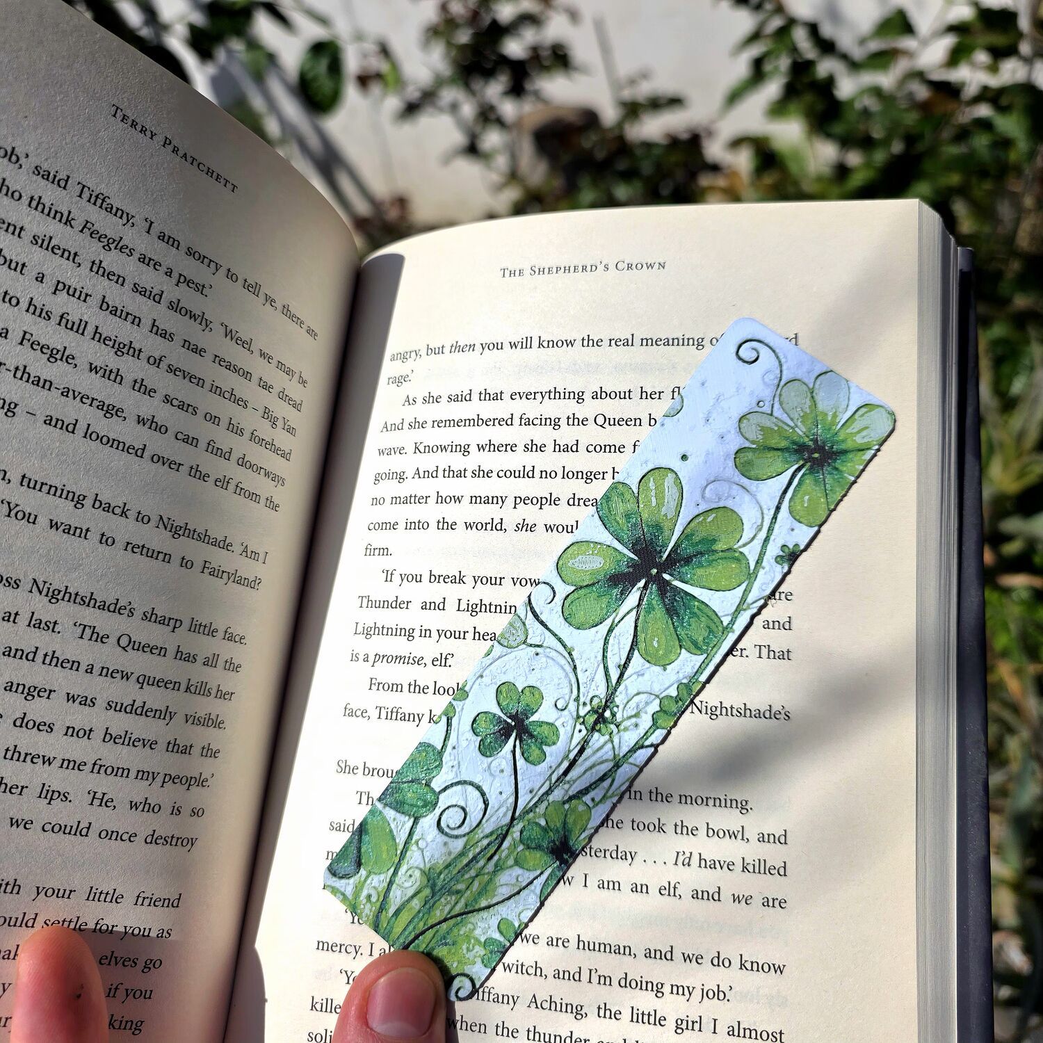 ✔ Design luminos cu trifoi cu trei și patru foi, simbol al echilibrului și noroculuiUn accesoriu ideal pentru iubitorii de lectură sau un cadou inspirat, cu o notă subtilă de eleganță și simbolistică naturală. 🍀