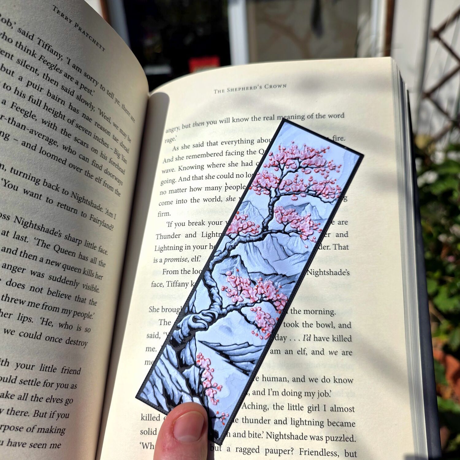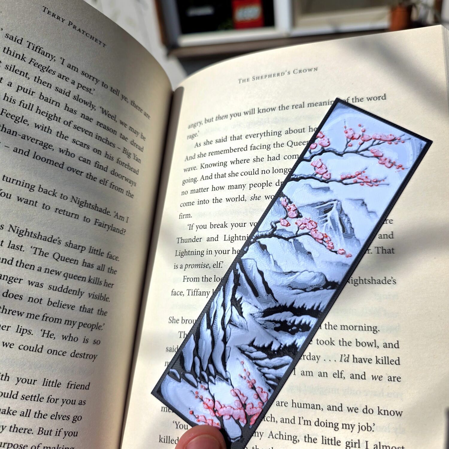 ✔ Design artistic cu munți, râu și flori de sakura în tonuri contrastantePerfect pentru uz personal sau ca un cadou elegant, acest semn de carte aduce un strop de liniște și inspirație în fiecare pagină citită. 🌸🏔️